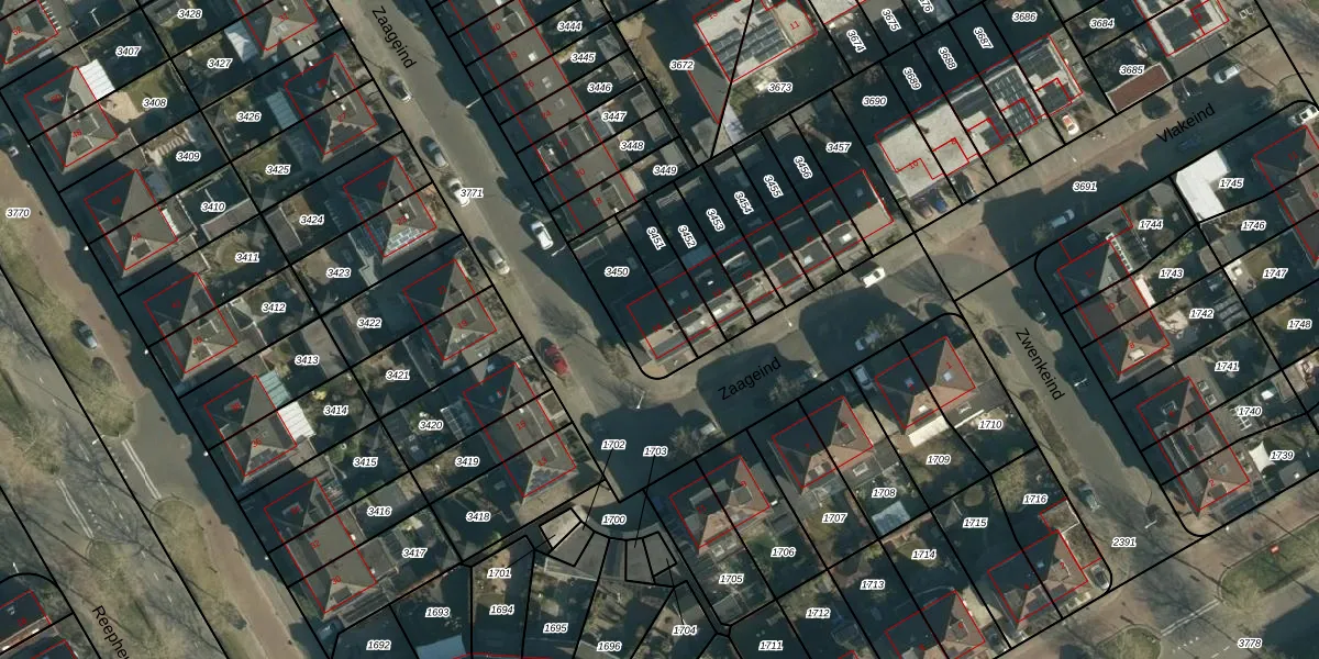 Zaageind 16 is gelegen op kadastraal perceel BES00K3450. Deze kadastrale aanduiding is uniek en wordt gebruikt door het Kadaster om eigendomsrechten en andere zakelijke rechten vast te leggen. Het perceel maakt onderdeel uit van de kadastrale gemeente Best.