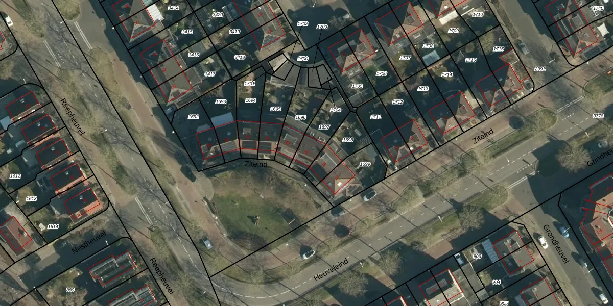 Het perceel waarop Ziteind 18 staat heeft een oppervlakte van 216 m². Dit is een middelgroot perceel. De perceeloppervlakte wordt geregistreerd door het Kadaster. Gedetailleerde informatie over de maten van dit perceel kunt u vinden in het rapport Kadastrale kaart met maatvoering van Ziteind 18.