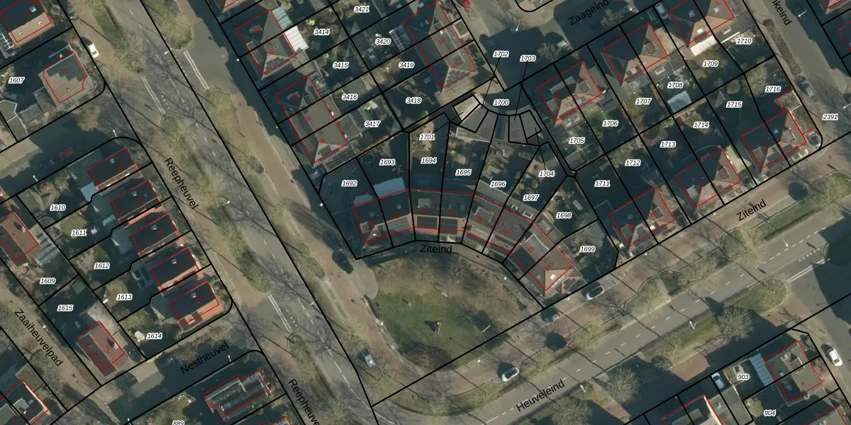 Het perceel waarop Ziteind 24 staat heeft een oppervlakte van 216 m². Dit is een middelgroot perceel. De perceeloppervlakte wordt geregistreerd door het Kadaster. Gedetailleerde informatie over de maten van dit perceel kunt u vinden in het rapport Kadastrale kaart met maatvoering van Ziteind 24.