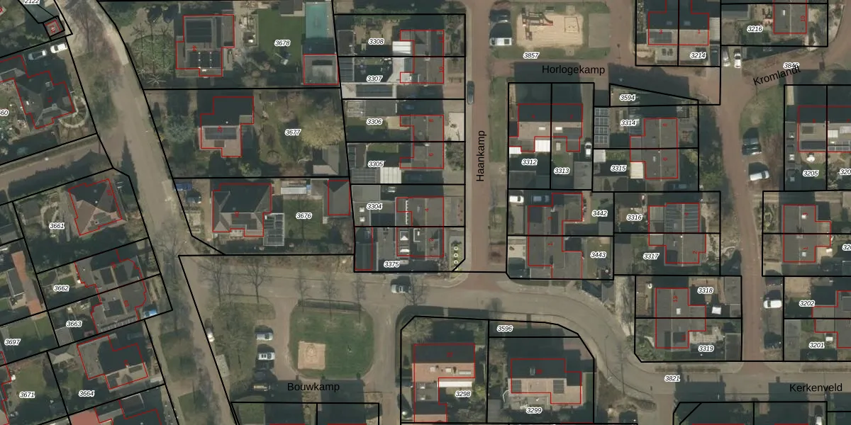 Gebruik de zoekbalk of klik op een perceel voor informatie over de adressen binnen dit perceel.