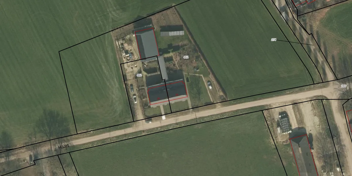 Het perceel waarop Haart 23 staat heeft een oppervlakte van 6579 m². Dit is een zeer groot perceel. De perceeloppervlakte wordt geregistreerd door het Kadaster. Gedetailleerde informatie over de maten van dit perceel kunt u vinden in het rapport Kadastrale kaart met maatvoering van Haart 23.