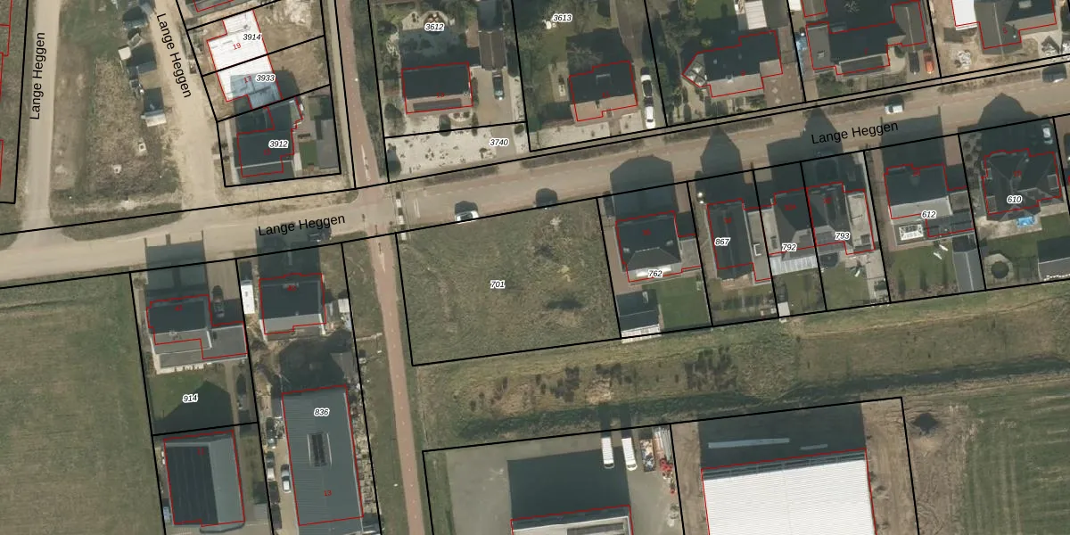 Lange Heggen 38-a is gelegen op kadastraal perceel BMR00S701. Deze kadastrale aanduiding is uniek en wordt gebruikt door het Kadaster om eigendomsrechten en andere zakelijke rechten vast te leggen. Het perceel maakt onderdeel uit van de kadastrale gemeente Boxmeer.