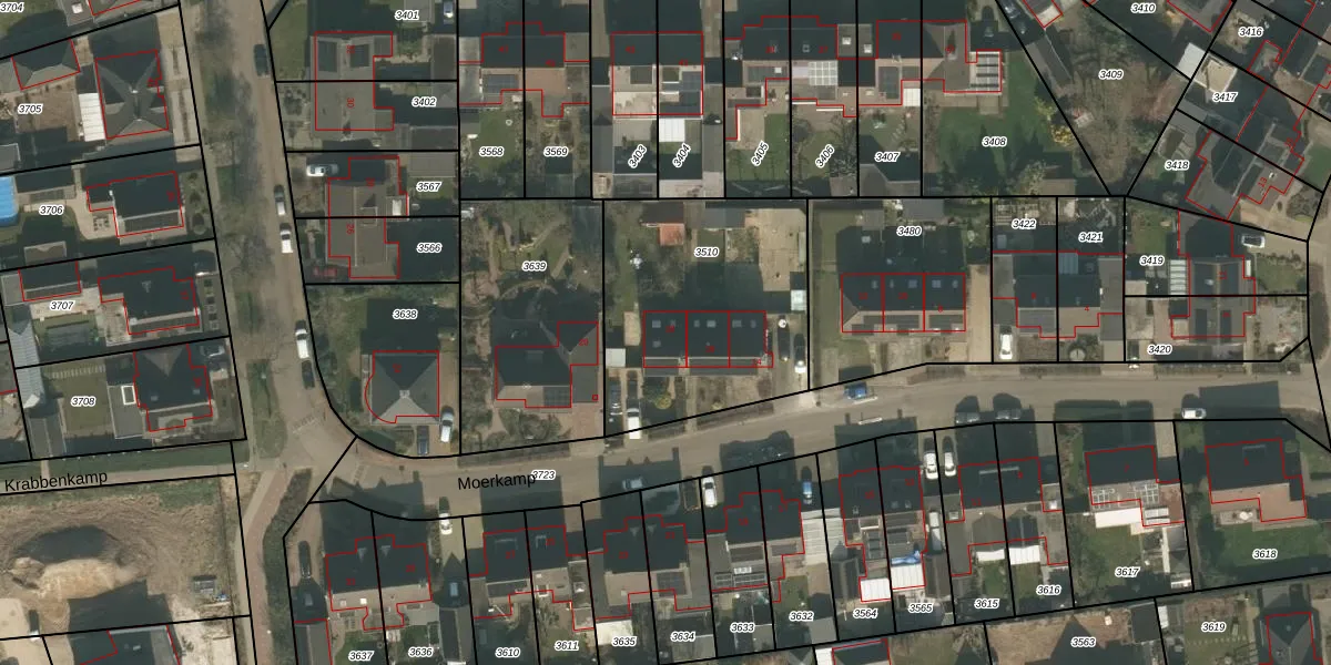Het perceel waarop Moerkamp 18 staat heeft een oppervlakte van 984 m². Dit is een groot perceel. De perceeloppervlakte wordt geregistreerd door het Kadaster. Gedetailleerde informatie over de maten van dit perceel kunt u vinden in het rapport Kadastrale kaart met maatvoering van Moerkamp 18.