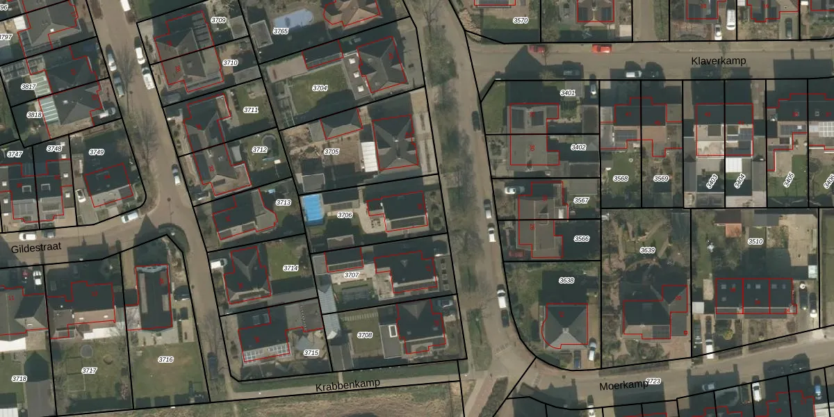 Gebruik de zoekbalk of klik op een perceel voor informatie over de adressen binnen dit perceel.