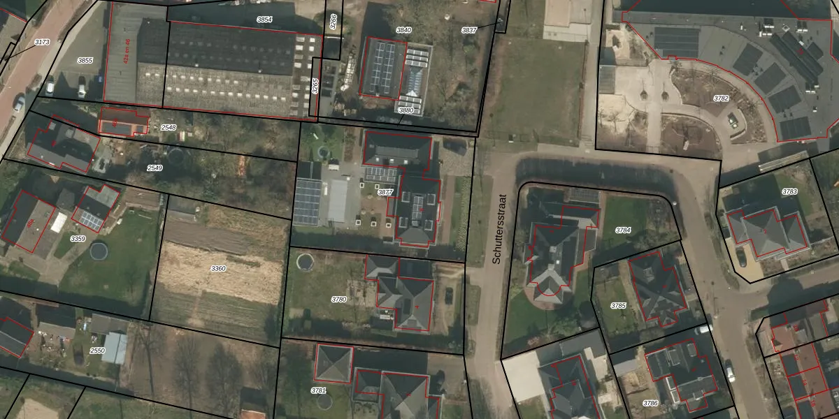 Schuttersstraat 6 is gelegen op kadastraal perceel BMR00F3877. Deze kadastrale aanduiding is uniek en wordt gebruikt door het Kadaster om eigendomsrechten en andere zakelijke rechten vast te leggen. Het perceel maakt onderdeel uit van de kadastrale gemeente Boxmeer.