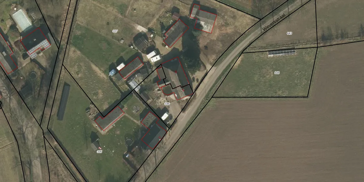 Weversstraat 13 is gelegen op kadastraal perceel BMR00R336. Deze kadastrale aanduiding is uniek en wordt gebruikt door het Kadaster om eigendomsrechten en andere zakelijke rechten vast te leggen. Het perceel maakt onderdeel uit van de kadastrale gemeente Boxmeer.