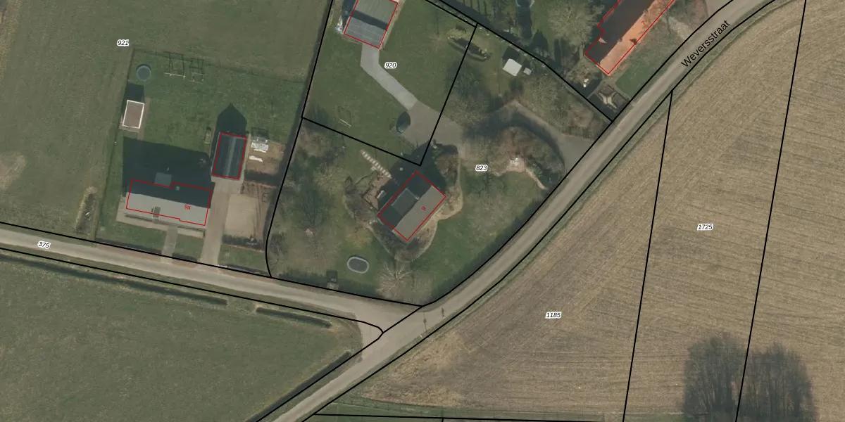 Weversstraat 9 is gelegen op kadastraal perceel BMR00R823. Deze kadastrale aanduiding is uniek en wordt gebruikt door het Kadaster om eigendomsrechten en andere zakelijke rechten vast te leggen. Het perceel maakt onderdeel uit van de kadastrale gemeente Boxmeer.
