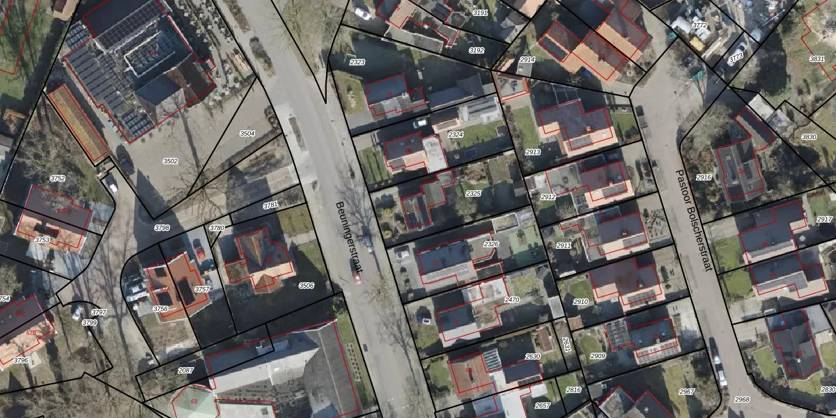 Beuningerstraat 74 is gelegen op kadastraal perceel LSR00A2325. Deze kadastrale aanduiding is uniek en wordt gebruikt door het Kadaster om eigendomsrechten en andere zakelijke rechten vast te leggen. Het perceel maakt onderdeel uit van de kadastrale gemeente Losser.
