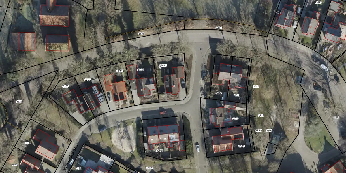 Het perceel waarop Broeninkskamp 45 staat heeft een oppervlakte van 450 m². Dit is een groot perceel. De perceeloppervlakte wordt geregistreerd door het Kadaster. Gedetailleerde informatie over de maten van dit perceel kunt u vinden in het rapport Kadastrale kaart met maatvoering van Broeninkskamp 45.