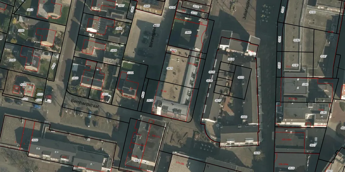 Het perceel waarop Bernhardstraat 51 staat heeft een oppervlakte van 583 m². Dit is een groot perceel. De perceeloppervlakte wordt geregistreerd door het Kadaster. Gedetailleerde informatie over de maten van dit perceel kunt u vinden in het rapport Kadastrale kaart met maatvoering van Bernhardstraat 51.