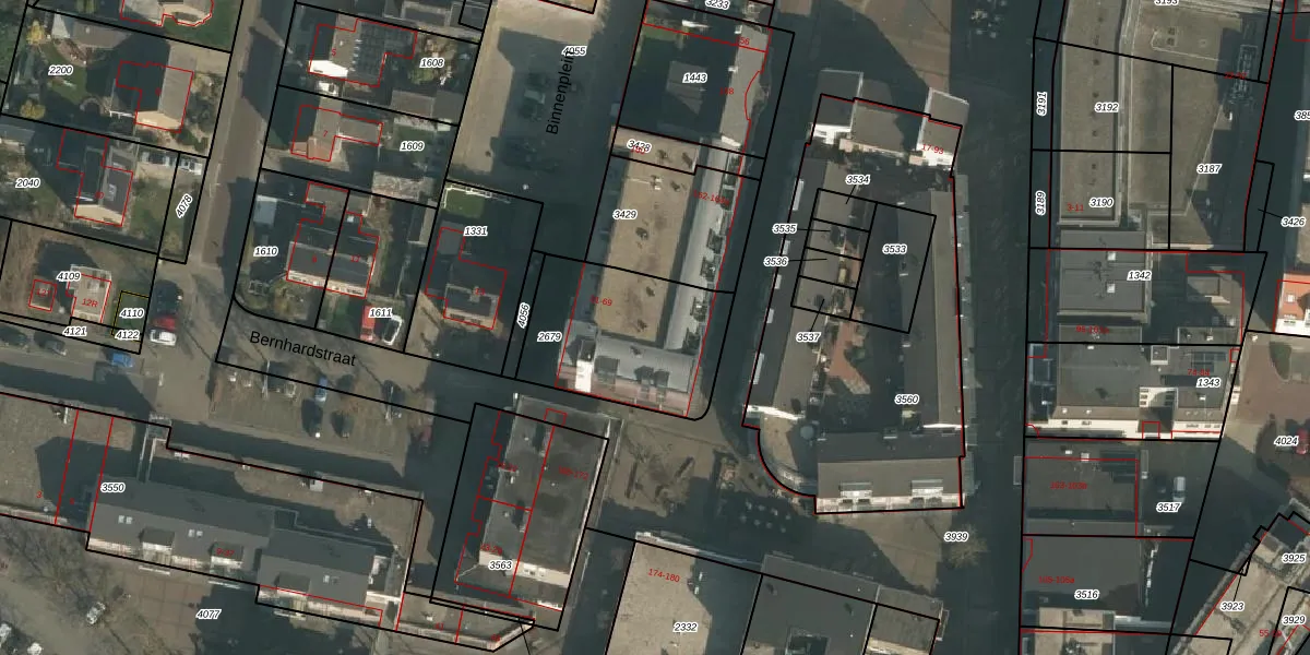 Het perceel waarop Bernhardstraat 61 staat heeft een oppervlakte van 583 m². Dit is een groot perceel. De perceeloppervlakte wordt geregistreerd door het Kadaster. Gedetailleerde informatie over de maten van dit perceel kunt u vinden in het rapport Kadastrale kaart met maatvoering van Bernhardstraat 61.