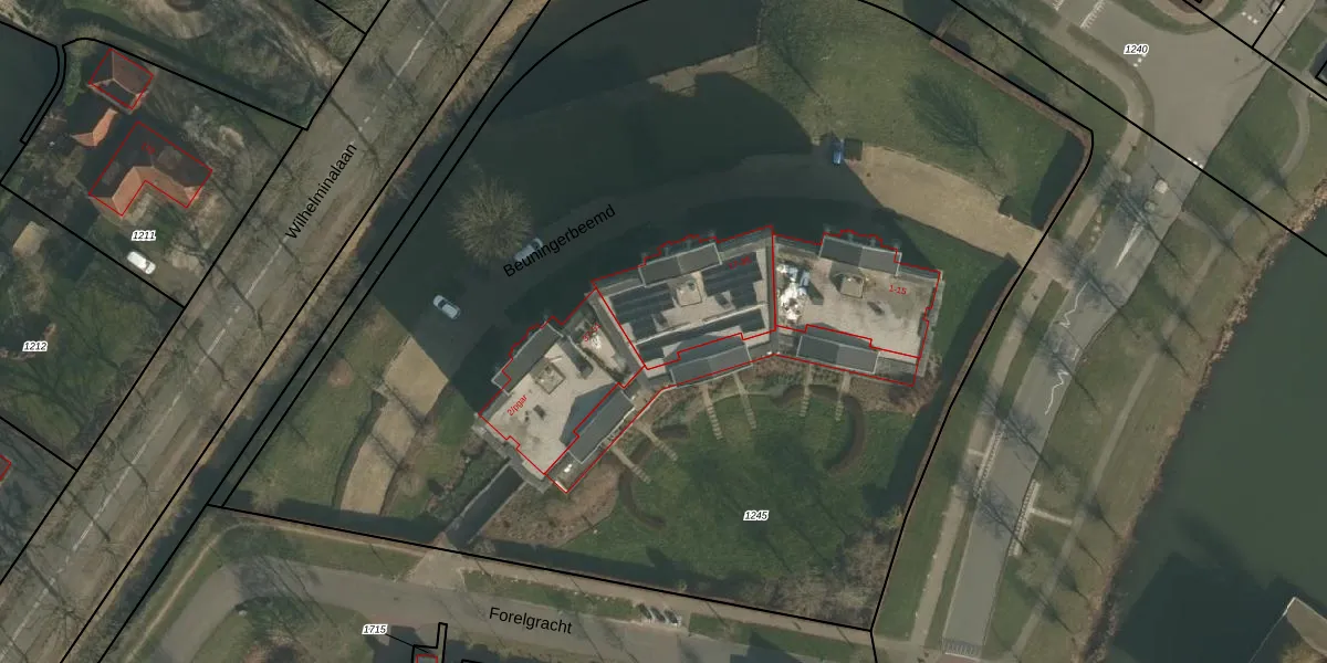 Het adres ligt op het perceel BNG00-F-1245, dat zich in de kadastrale gemeente Beuningen bevindt. Het perceel is met 7890 m² relatief groot. Het gemiddelde ligt in de kadastrale gemeente Beuningen op 2259,99 m². Het grootste perceel in de kadastrale gemeente is 19,7 ha. Het kleinste perceel heeft een oppervlakte van 0 m². Op het perceel zijn 27 adressen aanwezig. In de Basisregistratie Kadaster (BRK) werden de grenzen van het perceel geregistreerd op 19-08-2013.