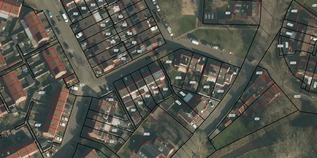 Het perceel waarop Console 14 staat heeft een oppervlakte van 171 m². Dit is een middelgroot perceel. De perceeloppervlakte wordt geregistreerd door het Kadaster. Gedetailleerde informatie over de maten van dit perceel kunt u vinden in het rapport Kadastrale kaart met maatvoering van Console 14.