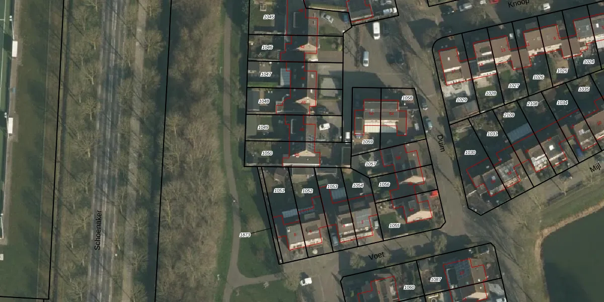 Het perceel waarop Duim 50 staat heeft een oppervlakte van 294 m². Dit is een middelgroot perceel. De perceeloppervlakte wordt geregistreerd door het Kadaster. Gedetailleerde informatie over de maten van dit perceel kunt u vinden in het rapport Kadastrale kaart met maatvoering van Duim 50.
