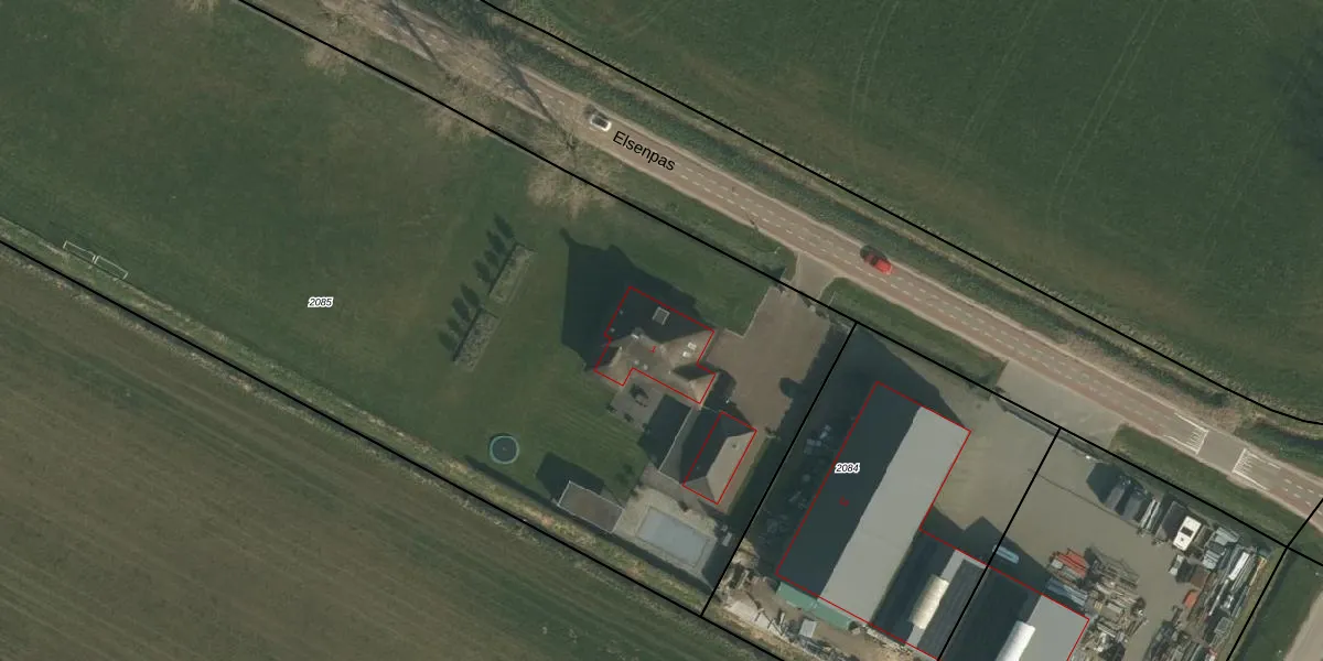 Het perceel waarop Elsenpas 1 staat heeft een oppervlakte van 9025 m². Dit is een zeer groot perceel. De perceeloppervlakte wordt geregistreerd door het Kadaster. Gedetailleerde informatie over de maten van dit perceel kunt u vinden in het rapport Kadastrale kaart met maatvoering van Elsenpas 1.
