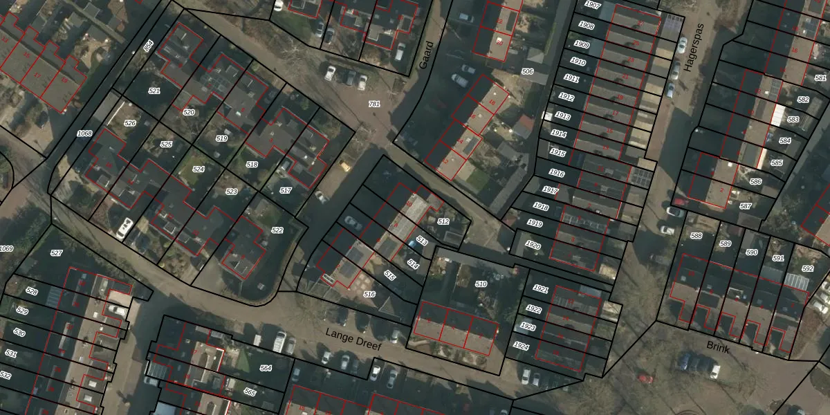 Gebruik de zoekbalk of klik op een perceel voor informatie over de adressen binnen dit perceel.