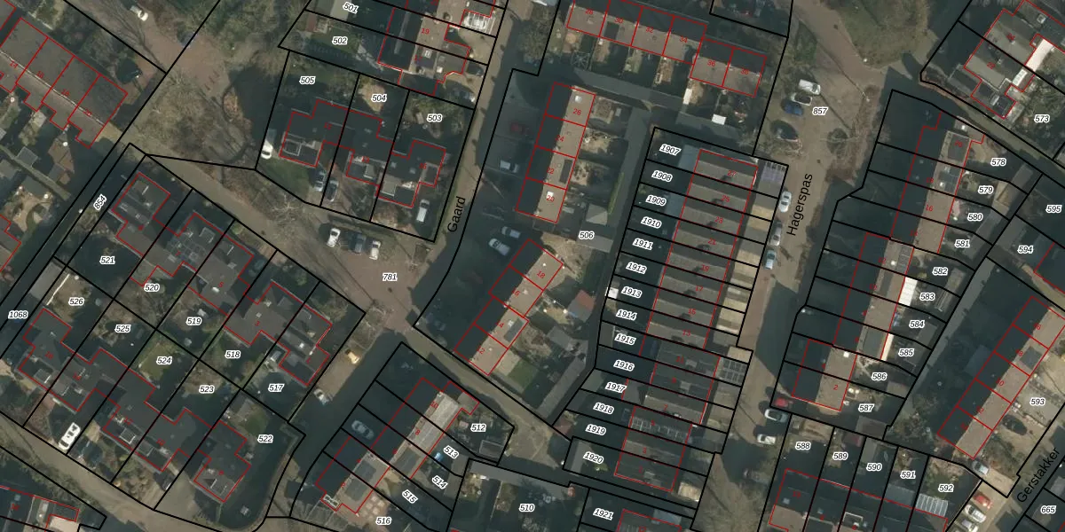 Het perceel waarop Gaard 18 staat heeft een oppervlakte van 2827 m². Dit is een zeer groot perceel. De perceeloppervlakte wordt geregistreerd door het Kadaster. Gedetailleerde informatie over de maten van dit perceel kunt u vinden in het rapport Kadastrale kaart met maatvoering van Gaard 18.