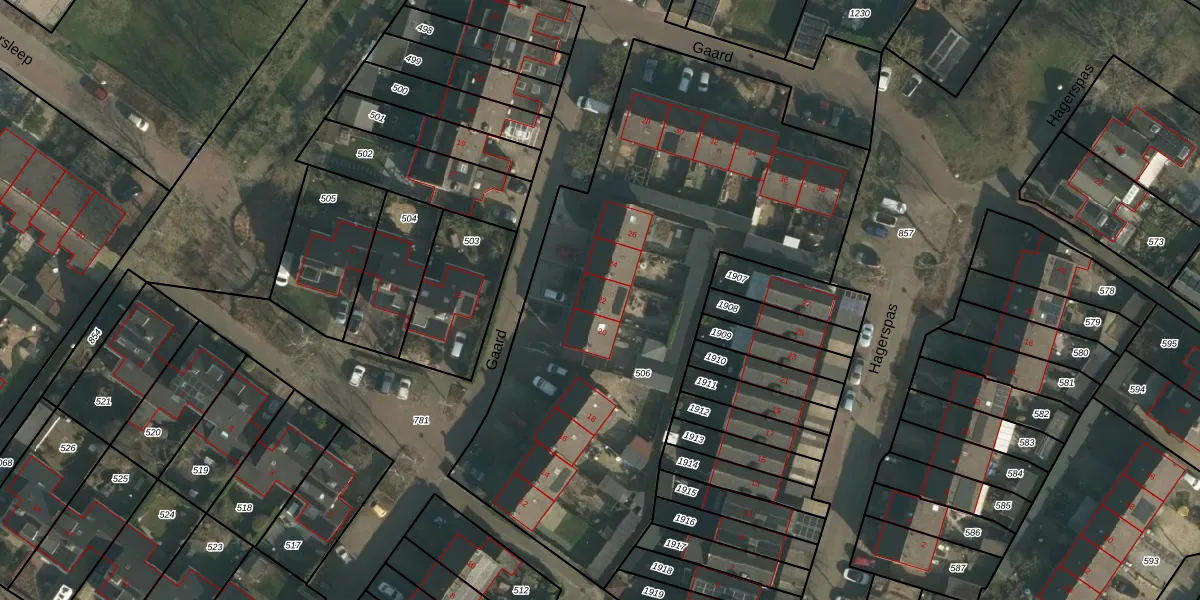 Het perceel waarop Gaard 22 staat heeft een oppervlakte van 2827 m². Dit is een zeer groot perceel. De perceeloppervlakte wordt geregistreerd door het Kadaster. Gedetailleerde informatie over de maten van dit perceel kunt u vinden in het rapport Kadastrale kaart met maatvoering van Gaard 22.