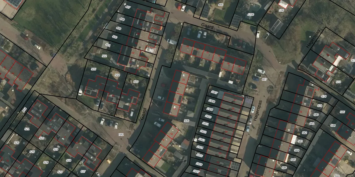 Het perceel waarop Gaard 24 staat heeft een oppervlakte van 2827 m². Dit is een zeer groot perceel. De perceeloppervlakte wordt geregistreerd door het Kadaster. Gedetailleerde informatie over de maten van dit perceel kunt u vinden in het rapport Kadastrale kaart met maatvoering van Gaard 24.