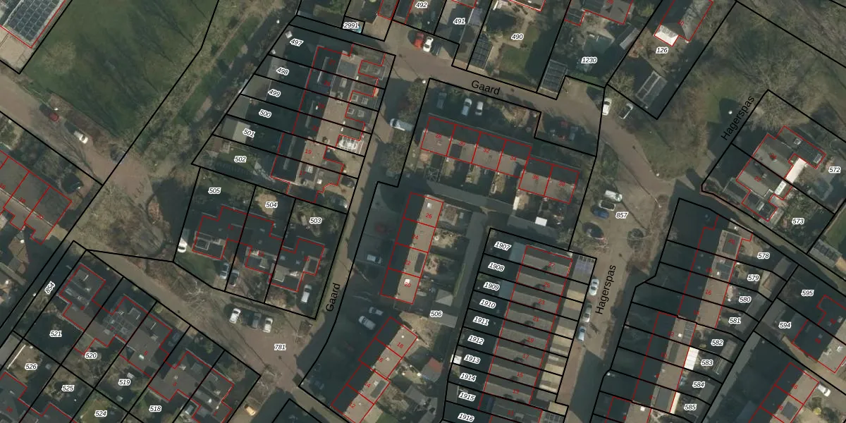 Het perceel waarop Gaard 26 staat heeft een oppervlakte van 2827 m². Dit is een zeer groot perceel. De perceeloppervlakte wordt geregistreerd door het Kadaster. Gedetailleerde informatie over de maten van dit perceel kunt u vinden in het rapport Kadastrale kaart met maatvoering van Gaard 26.