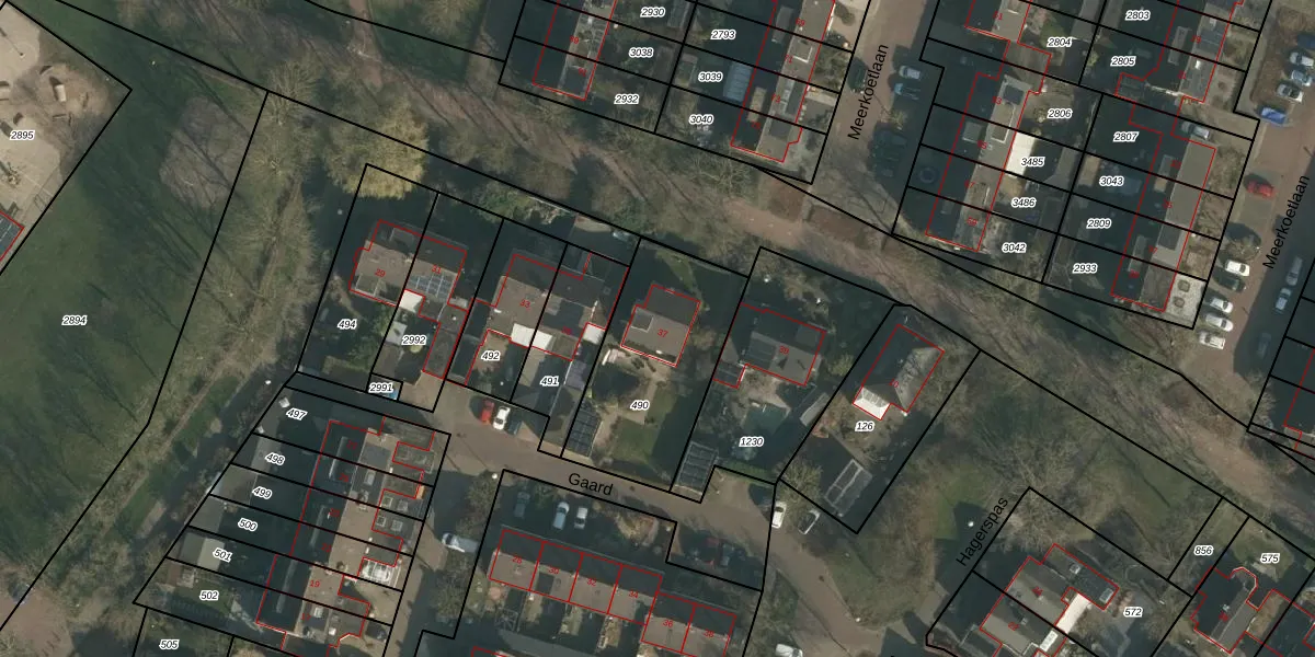 Het perceel waarop Gaard 37 staat heeft een oppervlakte van 624 m². Dit is een groot perceel. De perceeloppervlakte wordt geregistreerd door het Kadaster. Gedetailleerde informatie over de maten van dit perceel kunt u vinden in het rapport Kadastrale kaart met maatvoering van Gaard 37.