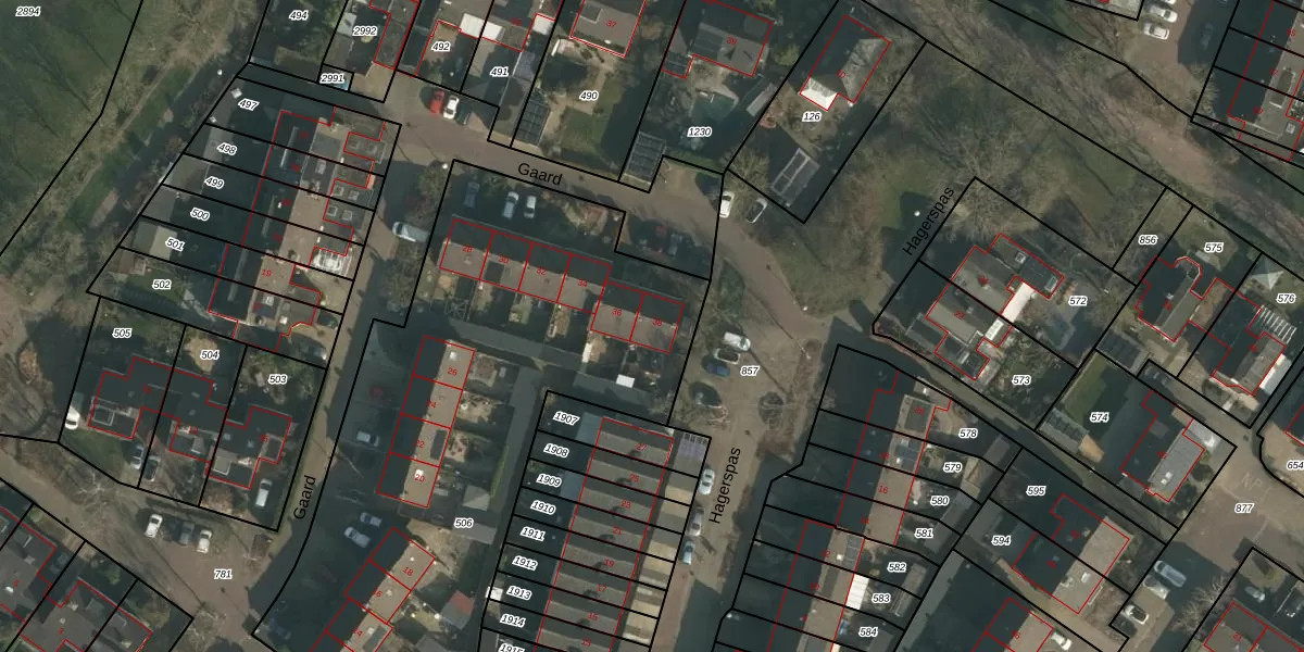 Het perceel waarop Gaard 38 staat heeft een oppervlakte van 2827 m². Dit is een zeer groot perceel. De perceeloppervlakte wordt geregistreerd door het Kadaster. Gedetailleerde informatie over de maten van dit perceel kunt u vinden in het rapport Kadastrale kaart met maatvoering van Gaard 38.