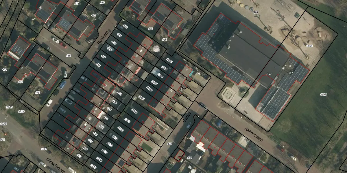 Het perceel waarop Gaffel 23 staat heeft een oppervlakte van 155 m². Dit is een middelgroot perceel. De perceeloppervlakte wordt geregistreerd door het Kadaster. Gedetailleerde informatie over de maten van dit perceel kunt u vinden in het rapport Kadastrale kaart met maatvoering van Gaffel 23.