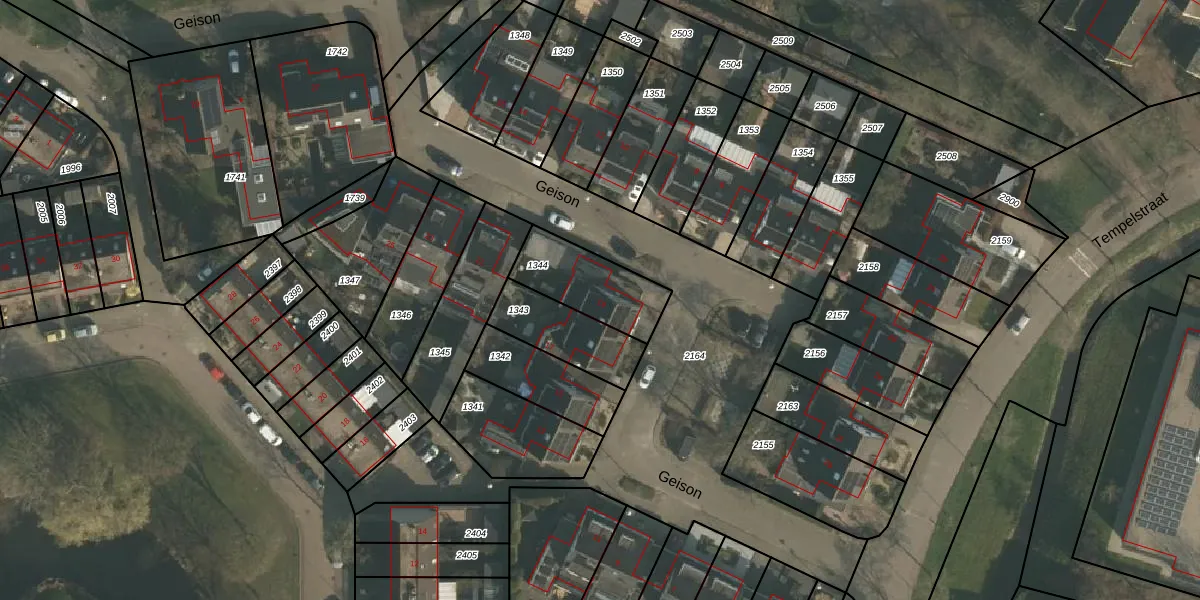 Het perceel waarop Geison 19 staat heeft een oppervlakte van 253 m². Dit is een middelgroot perceel. De perceeloppervlakte wordt geregistreerd door het Kadaster. Gedetailleerde informatie over de maten van dit perceel kunt u vinden in het rapport Kadastrale kaart met maatvoering van Geison 19.