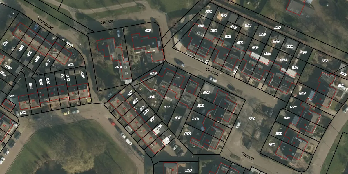 Het perceel waarop Geison 23 staat heeft een oppervlakte van 266 m². Dit is een middelgroot perceel. De perceeloppervlakte wordt geregistreerd door het Kadaster. Gedetailleerde informatie over de maten van dit perceel kunt u vinden in het rapport Kadastrale kaart met maatvoering van Geison 23.