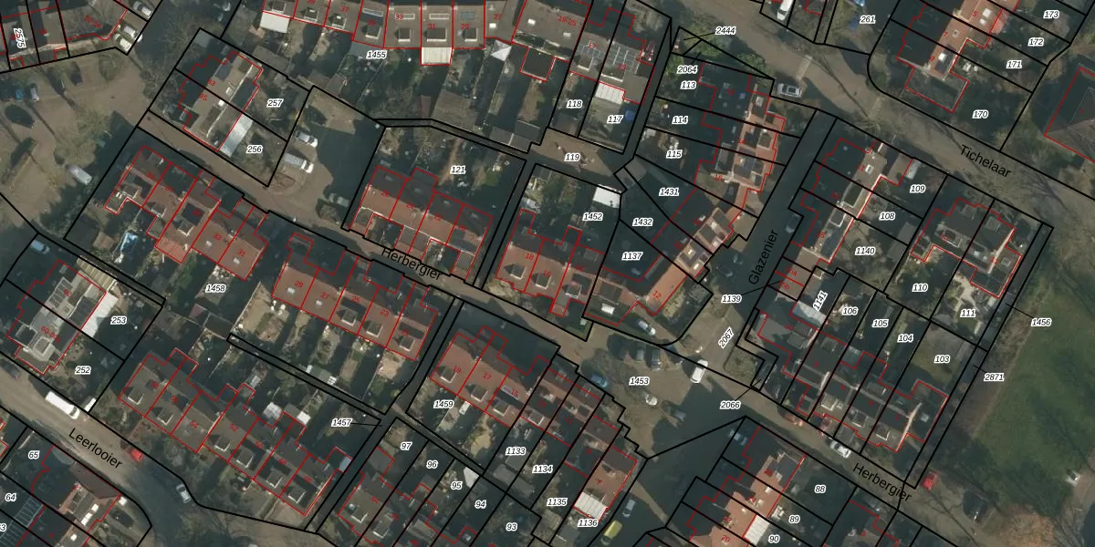 Het perceel waarop Herbergier 16 staat heeft een oppervlakte van 484 m². Dit is een groot perceel. De perceeloppervlakte wordt geregistreerd door het Kadaster. Gedetailleerde informatie over de maten van dit perceel kunt u vinden in het rapport Kadastrale kaart met maatvoering van Herbergier 16.