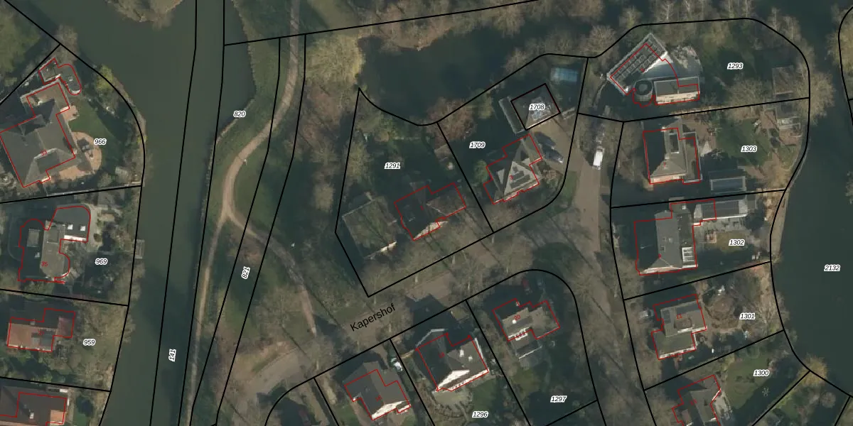 Het perceel waarop Kapershof 1 staat heeft een oppervlakte van 1053 m². Dit is een zeer groot perceel. De perceeloppervlakte wordt geregistreerd door het Kadaster. Gedetailleerde informatie over de maten van dit perceel kunt u vinden in het rapport Kadastrale kaart met maatvoering van Kapershof 1.
