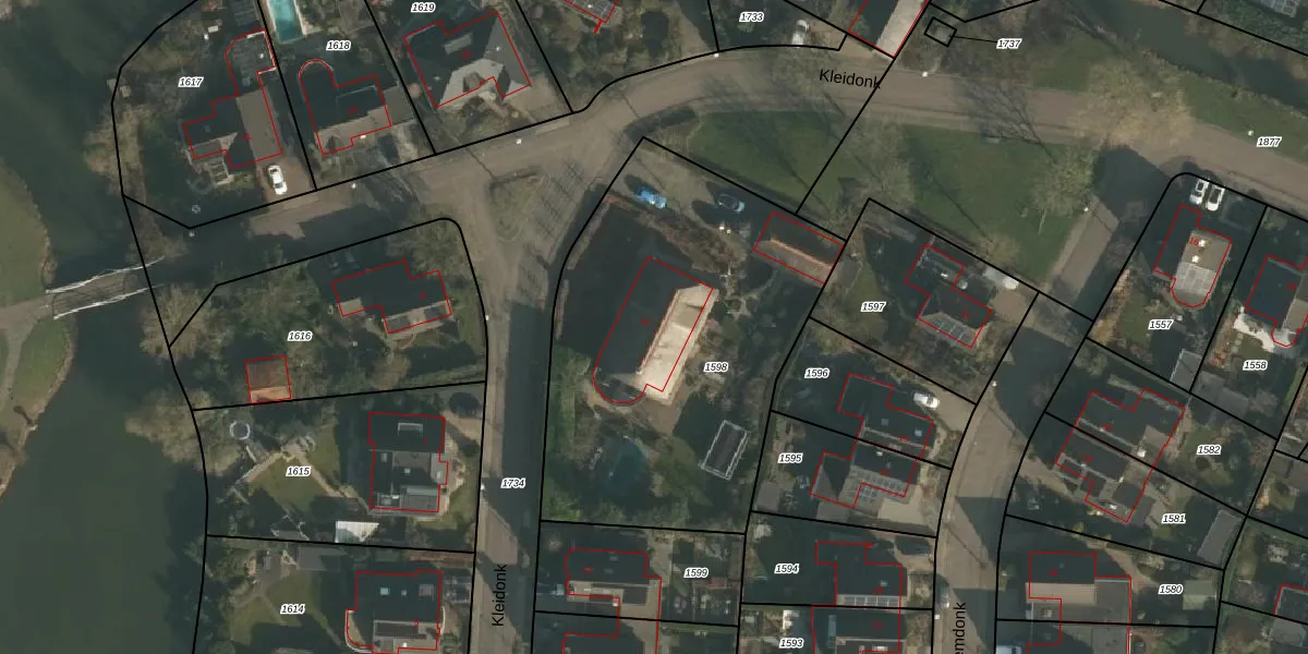 Het perceel waarop Kleidonk 14 staat heeft een oppervlakte van 1908 m². Dit is een zeer groot perceel. De perceeloppervlakte wordt geregistreerd door het Kadaster. Gedetailleerde informatie over de maten van dit perceel kunt u vinden in het rapport Kadastrale kaart met maatvoering van Kleidonk 14.
