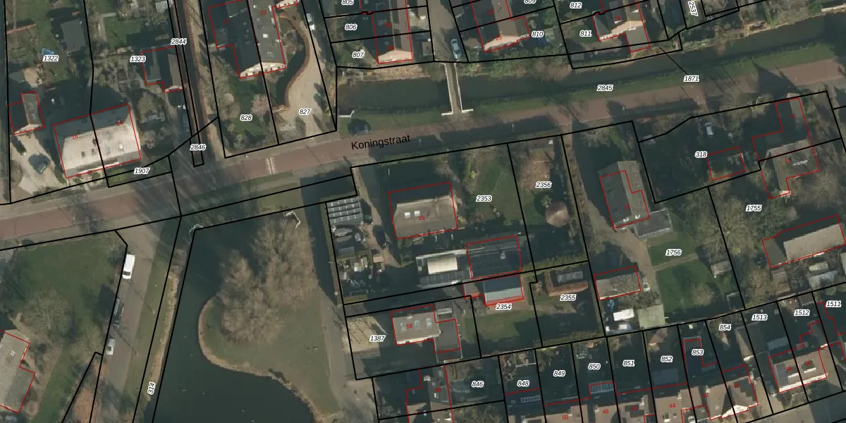 Het perceel waarop Koningstraat 15 staat heeft een oppervlakte van 1358 m². Dit is een zeer groot perceel. De perceeloppervlakte wordt geregistreerd door het Kadaster. Gedetailleerde informatie over de maten van dit perceel kunt u vinden in het rapport Kadastrale kaart met maatvoering van Koningstraat 15.
