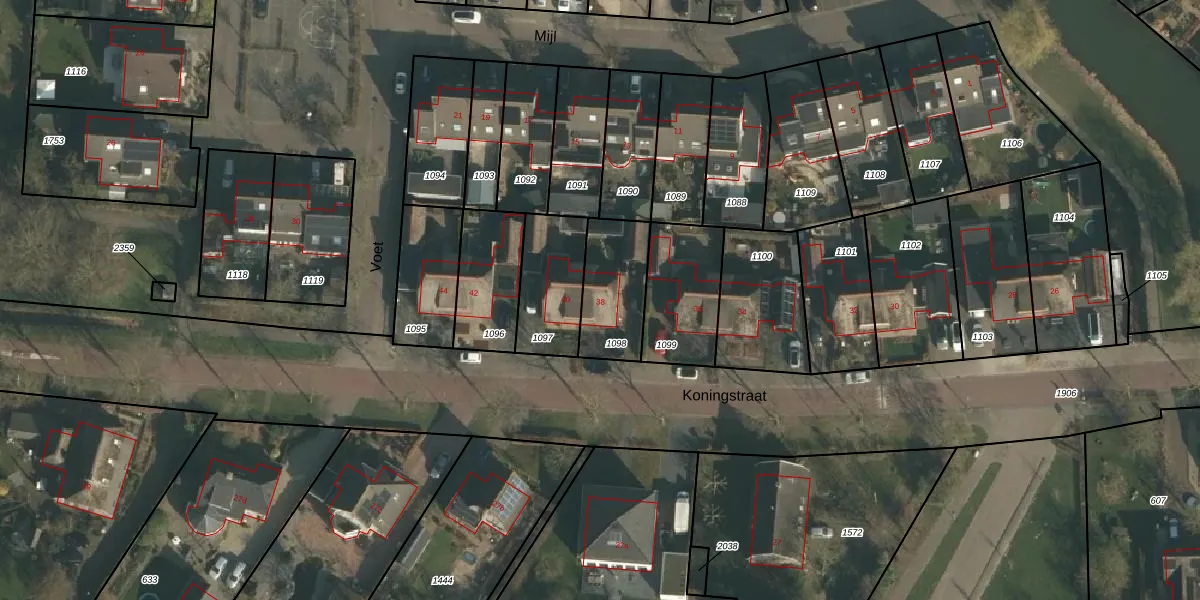 Het perceel waarop Koningstraat 38 staat heeft een oppervlakte van 245 m². Dit is een middelgroot perceel. De perceeloppervlakte wordt geregistreerd door het Kadaster. Gedetailleerde informatie over de maten van dit perceel kunt u vinden in het rapport Kadastrale kaart met maatvoering van Koningstraat 38.