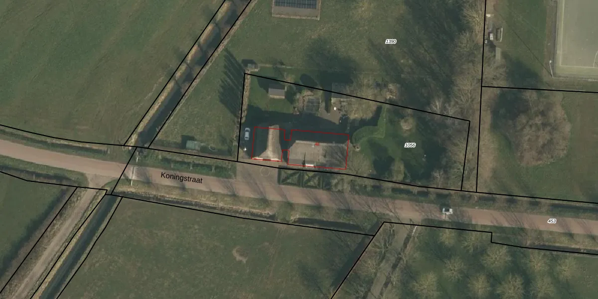 Het perceel waarop Koningstraat 48 staat heeft een oppervlakte van 2060 m². Dit is een zeer groot perceel. De perceeloppervlakte wordt geregistreerd door het Kadaster. Gedetailleerde informatie over de maten van dit perceel kunt u vinden in het rapport Kadastrale kaart met maatvoering van Koningstraat 48.
