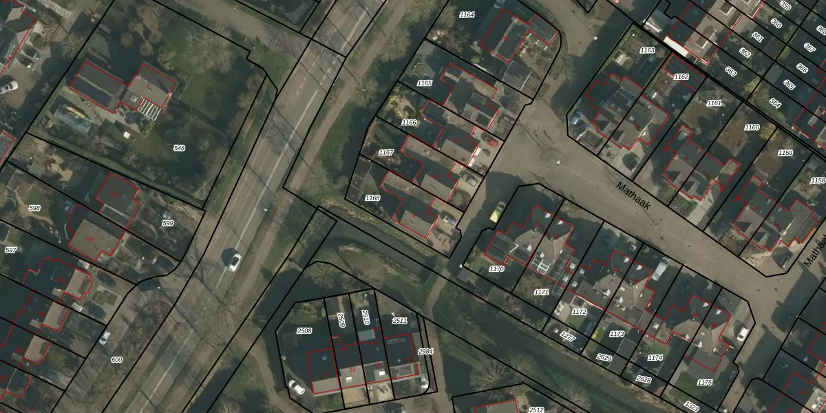 Het perceel waarop Mathaak 8 staat heeft een oppervlakte van 333 m². Dit is een groot perceel. De perceeloppervlakte wordt geregistreerd door het Kadaster. Gedetailleerde informatie over de maten van dit perceel kunt u vinden in het rapport Kadastrale kaart met maatvoering van Mathaak 8.