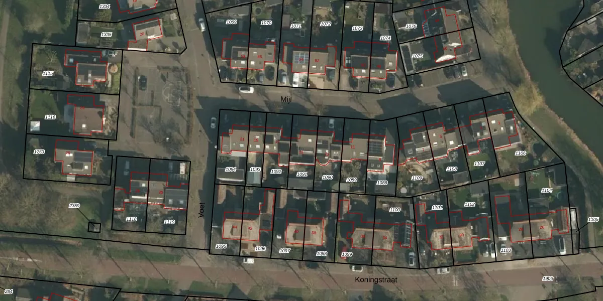 Het perceel waarop Mijl 15 staat heeft een oppervlakte van 215 m². Dit is een middelgroot perceel. De perceeloppervlakte wordt geregistreerd door het Kadaster. Gedetailleerde informatie over de maten van dit perceel kunt u vinden in het rapport Kadastrale kaart met maatvoering van Mijl 15.