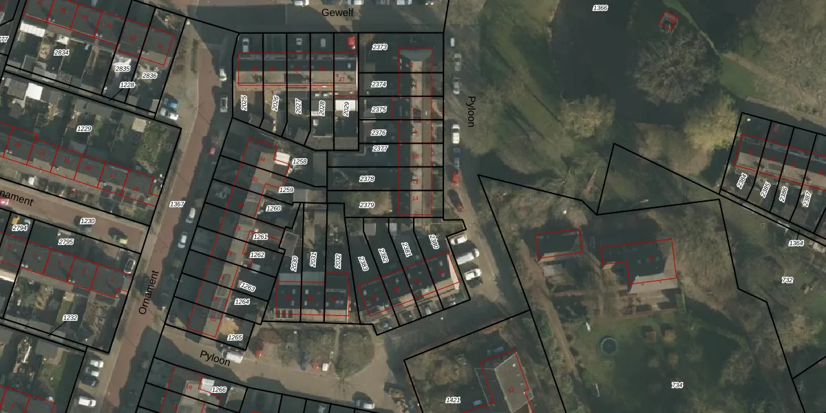 Het perceel waarop Pyloon 14 staat heeft een oppervlakte van 169 m². Dit is een middelgroot perceel. De perceeloppervlakte wordt geregistreerd door het Kadaster. Gedetailleerde informatie over de maten van dit perceel kunt u vinden in het rapport Kadastrale kaart met maatvoering van Pyloon 14.