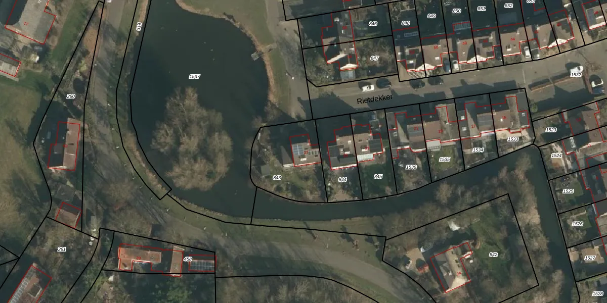 Het perceel waarop Rietdekker 27 staat heeft een oppervlakte van 545 m². Dit is een groot perceel. De perceeloppervlakte wordt geregistreerd door het Kadaster. Gedetailleerde informatie over de maten van dit perceel kunt u vinden in het rapport Kadastrale kaart met maatvoering van Rietdekker 27.