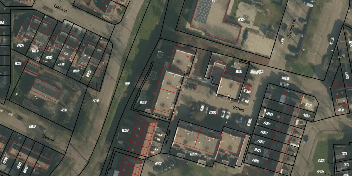 Het perceel waarop Schild 24 staat heeft een oppervlakte van 2085 m². Dit is een zeer groot perceel. De perceeloppervlakte wordt geregistreerd door het Kadaster. Gedetailleerde informatie over de maten van dit perceel kunt u vinden in het rapport Kadastrale kaart met maatvoering van Schild 24.