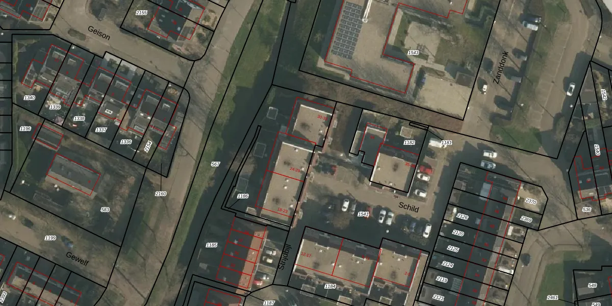 Het perceel waarop Schild 25 staat heeft een oppervlakte van 2085 m². Dit is een zeer groot perceel. De perceeloppervlakte wordt geregistreerd door het Kadaster. Gedetailleerde informatie over de maten van dit perceel kunt u vinden in het rapport Kadastrale kaart met maatvoering van Schild 25.