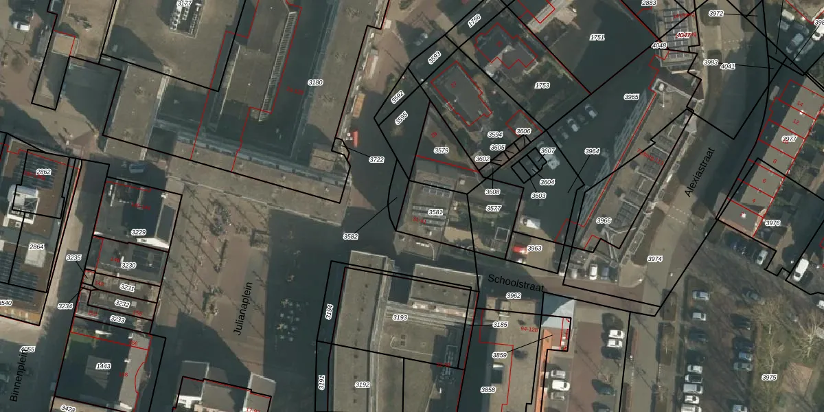 Schoolstraat 41 is gelegen op kadastraal perceel BNG00B3581. Deze kadastrale aanduiding is uniek en wordt gebruikt door het Kadaster om eigendomsrechten en andere zakelijke rechten vast te leggen. Het perceel maakt onderdeel uit van de kadastrale gemeente Beuningen.