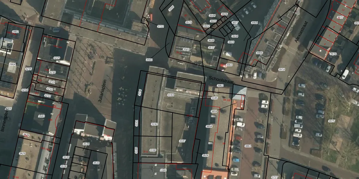 Schoolstraat 50 is gelegen op kadastraal perceel BNG00B3193. Deze kadastrale aanduiding is uniek en wordt gebruikt door het Kadaster om eigendomsrechten en andere zakelijke rechten vast te leggen. Het perceel maakt onderdeel uit van de kadastrale gemeente Beuningen.