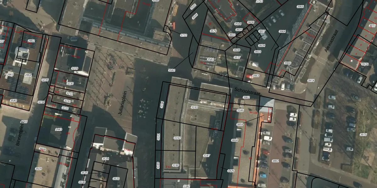Schoolstraat 52 is gelegen op kadastraal perceel BNG00B3193. Deze kadastrale aanduiding is uniek en wordt gebruikt door het Kadaster om eigendomsrechten en andere zakelijke rechten vast te leggen. Het perceel maakt onderdeel uit van de kadastrale gemeente Beuningen.