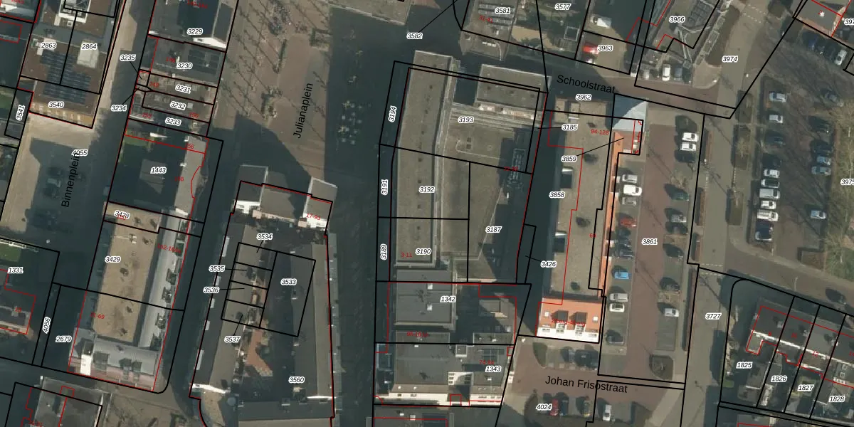 Schoolstraat 88 is gelegen op kadastraal perceel BNG00B3192. Deze kadastrale aanduiding is uniek en wordt gebruikt door het Kadaster om eigendomsrechten en andere zakelijke rechten vast te leggen. Het perceel maakt onderdeel uit van de kadastrale gemeente Beuningen.
