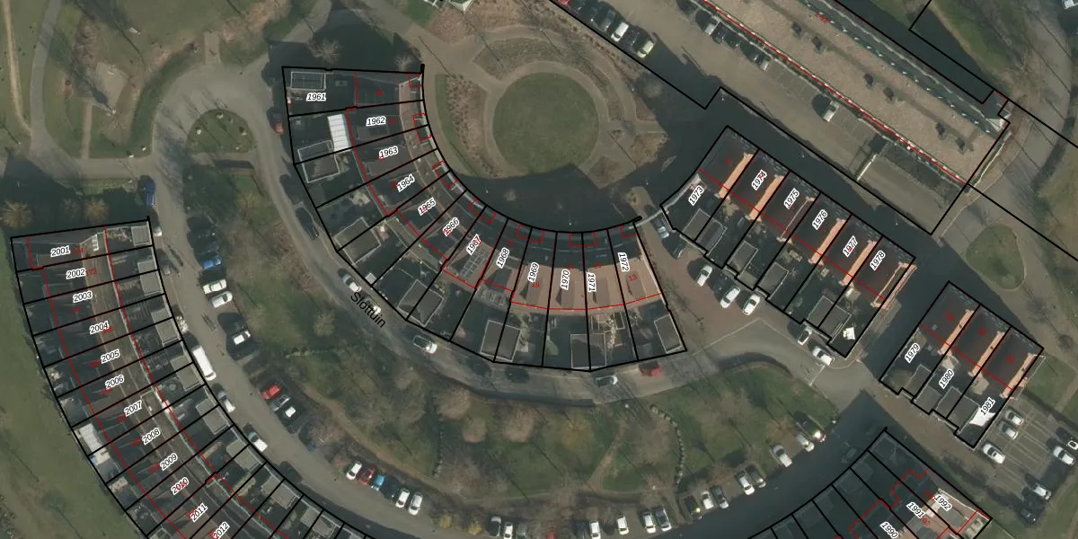 Het perceel waarop Slottuin 19 staat heeft een oppervlakte van 173 m². Dit is een middelgroot perceel. De perceeloppervlakte wordt geregistreerd door het Kadaster. Gedetailleerde informatie over de maten van dit perceel kunt u vinden in het rapport Kadastrale kaart met maatvoering van Slottuin 19.