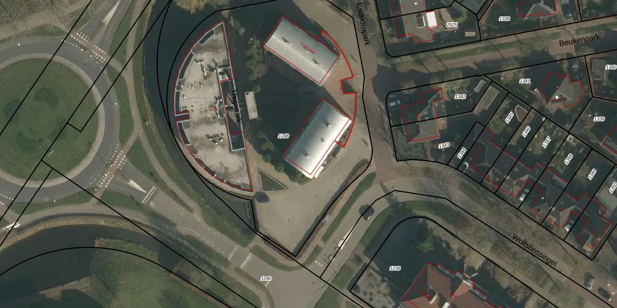 Het adres ligt op het perceel BNG00-F-1248, dat zich in de kadastrale gemeente Beuningen bevindt. Het perceel is met 3938 m² relatief groot. Het gemiddelde ligt in de kadastrale gemeente Beuningen op 2259,99 m². De grootste perceeloppervlakte in de kadastrale gemeente is 19,7 ha. De kleinste oppervlakte bedraagt 0 m². Op het perceel liggen in totaal 28 adressen. De huidige grenzen van het perceel zijn digitaal in de Basisregistratie Kadaster (BRK) geregistreerd op 20-11-2007.