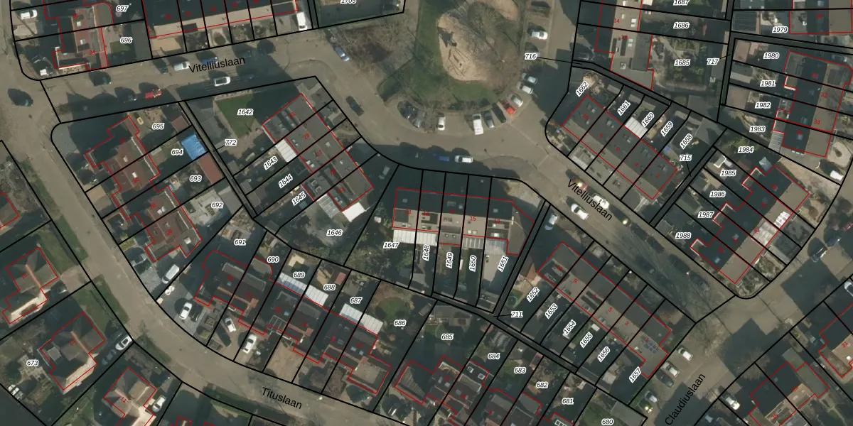 Vitelliuslaan 19 is gelegen op kadastraal perceel BNG00H1648. Deze kadastrale aanduiding is uniek en wordt gebruikt door het Kadaster om eigendomsrechten en andere zakelijke rechten vast te leggen. Het perceel maakt onderdeel uit van de kadastrale gemeente Beuningen.