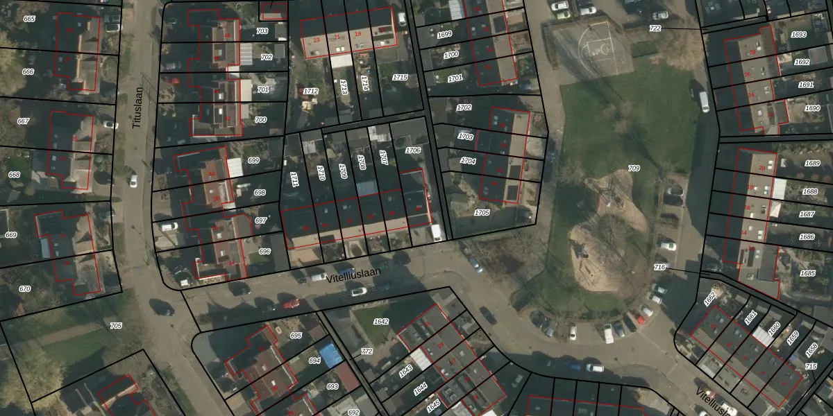 Vitelliuslaan 46 is gelegen op kadastraal perceel BNG00H1706. Deze kadastrale aanduiding is uniek en wordt gebruikt door het Kadaster om eigendomsrechten en andere zakelijke rechten vast te leggen. Het perceel maakt onderdeel uit van de kadastrale gemeente Beuningen.