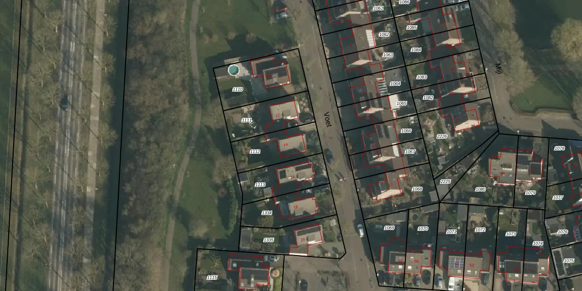 Het perceel waarop Voet 14 staat heeft een oppervlakte van 327 m². Dit is een groot perceel. De perceeloppervlakte wordt geregistreerd door het Kadaster. Gedetailleerde informatie over de maten van dit perceel kunt u vinden in het rapport Kadastrale kaart met maatvoering van Voet 14.